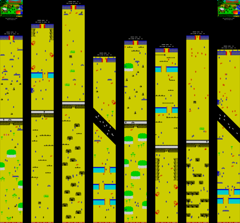 The object of the game in to advance as far as possible into enemy lines whilst destroying rebel forces, installations and vehicles. Along the way you should pick up as many boxes of hand grenades as possible so as to replenish our stock.