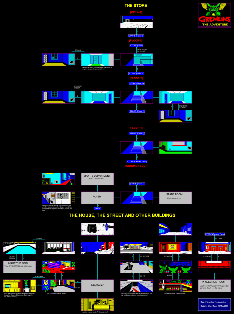 Текстовая адвенчура, где вы играете за Билли и отправляетесь на опасное приключение в Кингстон Фоллс, который находится под угрозой нашествия гремлинов. Главный злодей, Страйп, возглавляет армию злобных существ, и ваша задача – спасти город при помощи Гизмо, крохотного могваи.