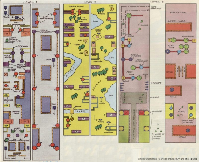 GREEN: Laser jammed – you are defenceless for 10 seconds At the end of each level the defences throw everything they’ve got at you. It you survive you are transported to the next zone.