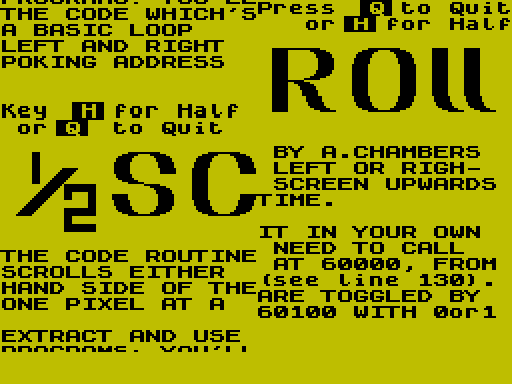 Игра 1/2 Scroll запускается прямо на сайте. Программа для визуализации, опубликованная в Великобритании в 1998 году командой Outlet, которую разработал Allan Chambers.