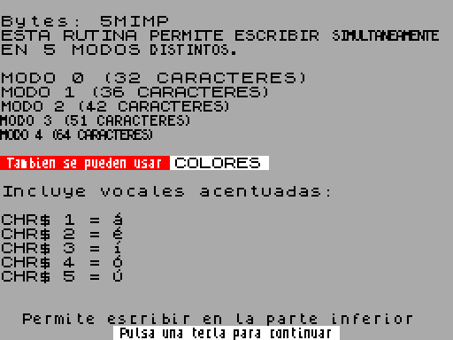 Сыграйте в 5 Modos de Impresion прямо сейчас! Это утилита для создания и редактирования шрифтов, которую создал Antonio Bermudez, была выпущена творческой группой MicroHobby в 1989 году в Испании.