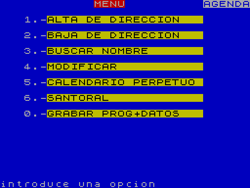 Запустите Agenda и играйте. Эта бытовая программа, опубликованная в Испании в 1984 году командой DIMensionNEW, которую написал неизвестный автор.
