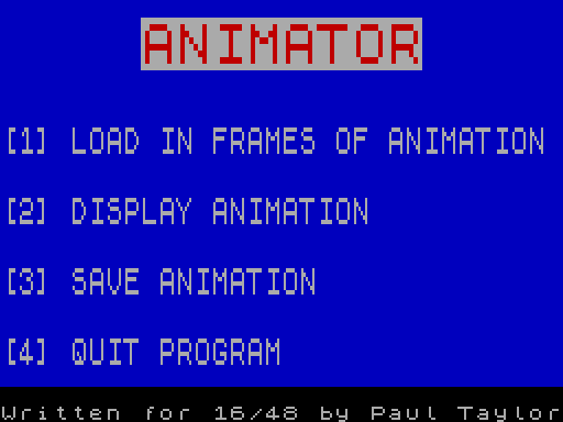 Игра Animator запускается прямо на сайте. Программа для визуального представления, выпущенная в Великобритании в 1985 году творческой группой 16/48 Tape Magazine, которую разработал Paul Taylor.