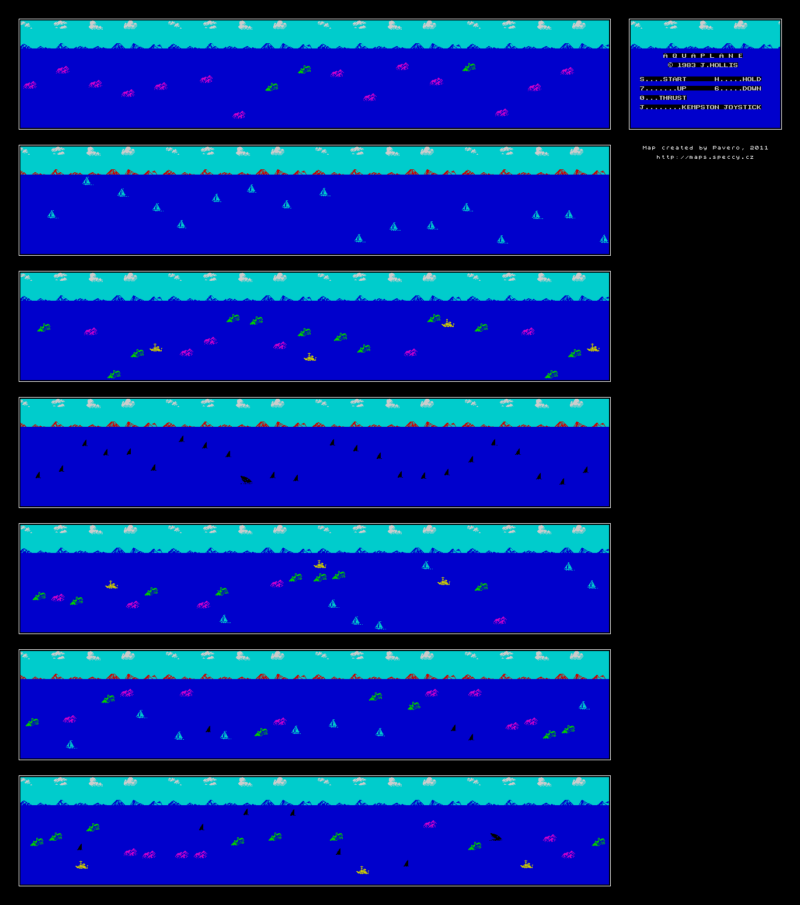 Запустите Aquaplane и играйте. Это аркадная игра, которую создал John Hollis, была выпущена компанией Quicksilva Ltd в 1983 году в Великобритании.