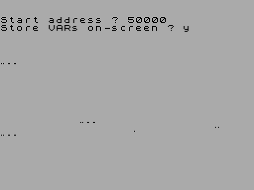 BASASM можно определить переменные во второй и третьей половинки памяти экрана, при условии, что не более 4096 байт не являются необходимо, выпуская больше памяти для кода – BASCOMP & BASASM Сами собраны таким образом.