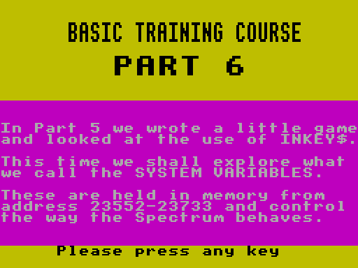 Играйте в Basic Training Course Part 6 без эмуляторов прямо на сайте. Образовательная программа, которую подарил миру неизвестный автор, была выпущена компанией Infinite Software в 1985 году в Великобритании.