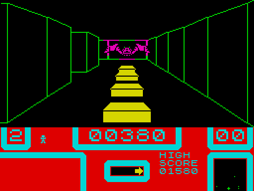 Запустите Bat Attack, 3D и играйте. Это игра-лабиринт, которую создал Mark C. Jones, была выпущена командой Cheetahsoft Ltd в 1984 году в Великобритании.