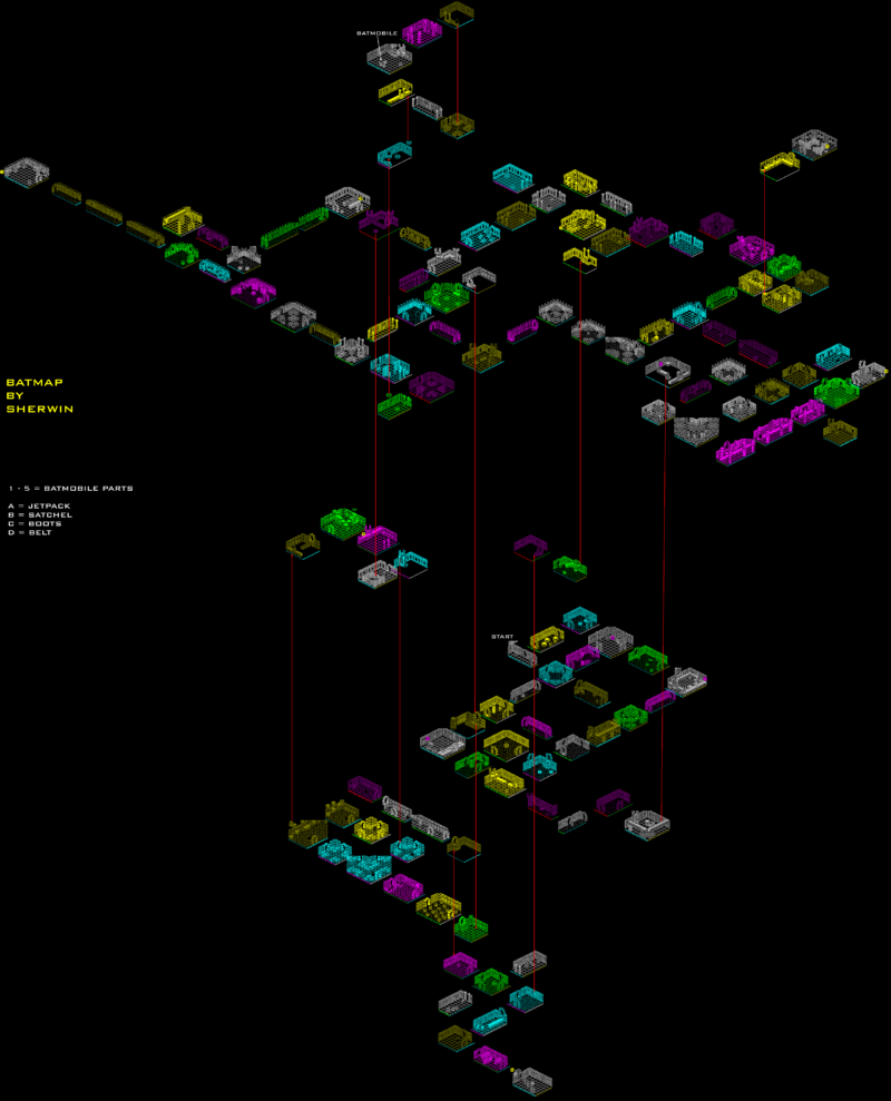 “Batman” – интересная ретро-игра, где игроку предстоит помочь Бэтмену спасти Робина, который был похищен Джокером и Риддлером. Игра происходит в пещерах Бэтмена под Готэм-сити, где Бэтмен должен собрать части Бэтмобиля, разбросанные в катакомбах, чтобы отправиться на спасательную операцию.