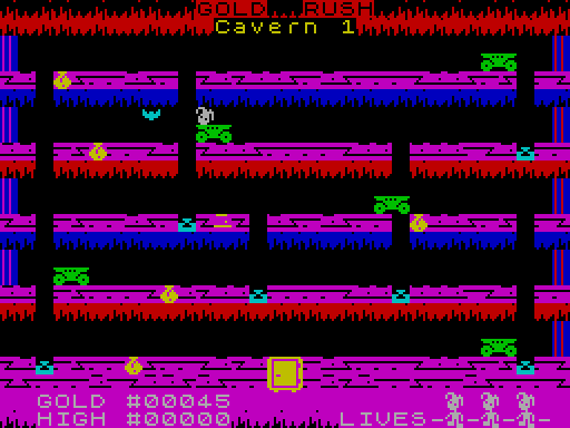 Запустите Benny Bunny: Gold Rush и играйте. Это игра-платформер, которую создал T. Sherwood, была опубликована командой Sinclair Programs в 1985 году в Великобритании.