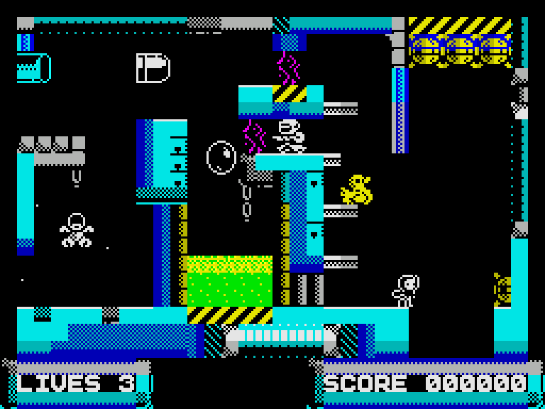 Игра поставляется как .TAP файл, готовый к применению в компьютерах ZX Spectrum 48k. Если у тебя нет ZX Spectrum’а, ты можешь использовать эмулятор наподобие ZXSpin (а можешь играть прямо на сайте viva-games.ru – прим. переводчика).