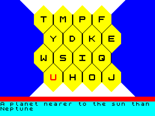 Запустите Blockbusters и играйте. Это игра-викторина, которую создали Tim Williams и Chris Jones, была выпущена компанией Macsen Software в 1984 году в Великобритании.