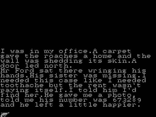 такие как EXAMINE, ВНИЗ, на север, и т.д. Кроме того, можно хранить позицию игры в памяти для мгновенного вызова. Тем не менее, всегда прибегают к более привычной форме экономии на ленту для того, сохранить более постоянную запись вашего прогресса.