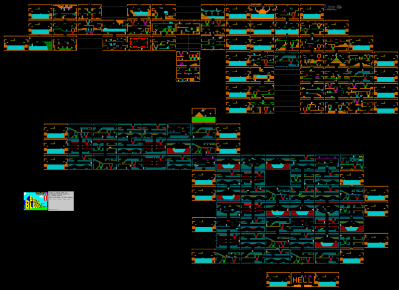 The map of the game is huge – over 104 rooms, and horizontal levels of rooms loop back on themselves left to right across the room with the shark. The exit from the shark room (on the left or right) leads to whichever room you accessed that exit from last. This, used judiciously, can be used to cross large areas of the map quickly.