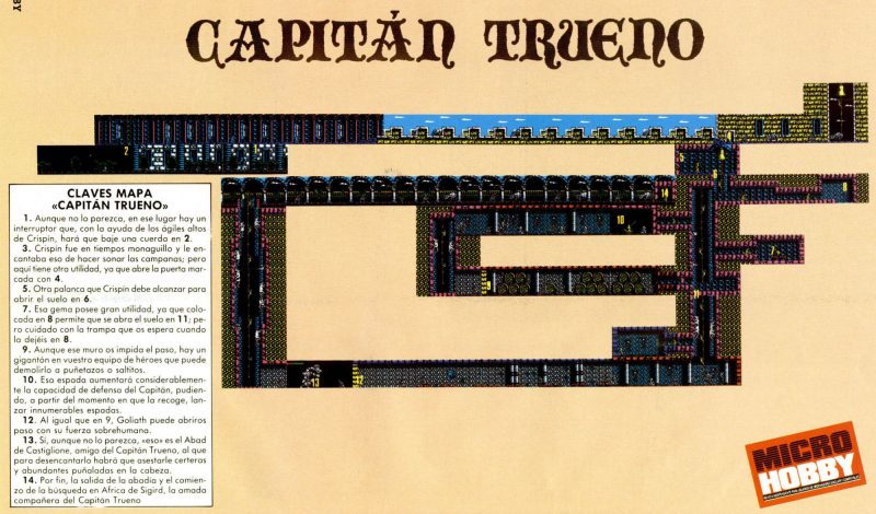 El Capitán Trueno состоит из двух отдельных грузов. Первая – это быстро развивающееся видеоприключение, действие которого происходит в средневековом монастыре, а вторая – быстро развивающаяся аркада с COIN-UP экшеном.