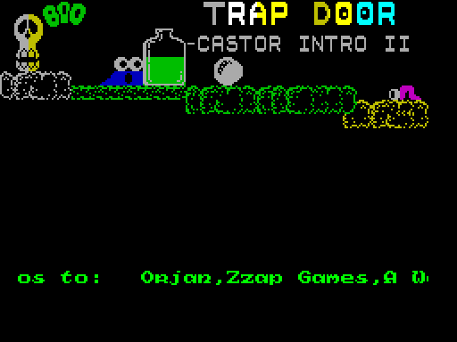 Игра Castor Intro 2: Trap Door запускается прямо на сайте. Пати-демонстрация, которую подарил миру неизвестный автор, была выпущена компанией Castor Cracking Group в 1987 году в Швеции.