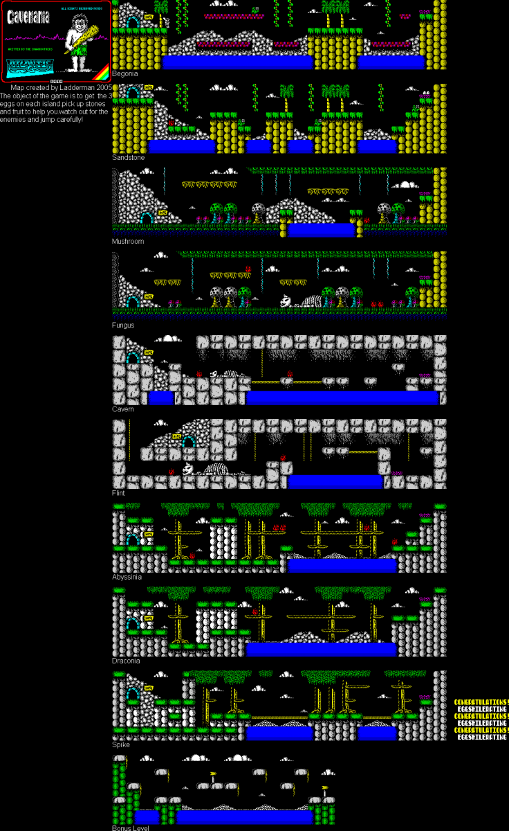 Игра Cavemania запускается прямо на сайте. Эта игра-платформер, выпущенная в Великобритании в 1990 году командой Atlantis Software Ltd, которую написали The Shaw Brothers, Graham D. Shaw, David A. Shaw и Adrian R. Shaw.