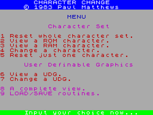 Играйте в Character Change без эмуляторов прямо на сайте. Это редактор шрифтов, который создал Paul Matthews, был опубликован творческой группой ZX Computing в 1984 году в Великобритании.