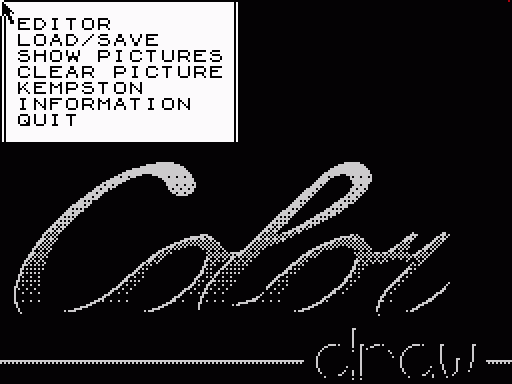 1. ЭЛЕМЕНТЫ УПРАВЛЕНИЯ Движение курсора управляется с помощью клавиш Q, A, O, P, M / Space, или с Kempston Джойстик. Нет ключевым переопределение невозможно, как почти каждый ключ используется в Система редактора «горячих клавиш». (Для дальнейшего Информация. об этой функции см редактор раздел.) 2. Главное меню РЕДАКТОР Это основная часть программы. (Увидеть Раздел Editor для деталей.) Загрузка / сохранение Во-первых, один из трех картинок должно быть выбран, а также устройство для хранения, то есть лента, диск или Betadisk. Во время Имя файла ввода, Symbol Shift / Q очищает все, что было напечатано, а Редактировать отказывается от операции в целом. (Увидеть Загрузка / Сохранение раздел для списка подварианты.) Показать фотографии Ключи 1,2,3 переключение между изображениями. Ясную картину Выбор картины для очистки. Набор цветов и затем снимите его.