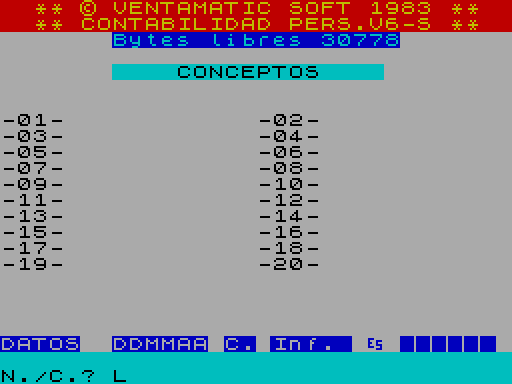 Запустите Contabilidad Personal V:6 и играйте. Повседневная программа, которую подарил миру неизвестный автор, была издана творческой группой Ventamatic в 1983 году в Испании.