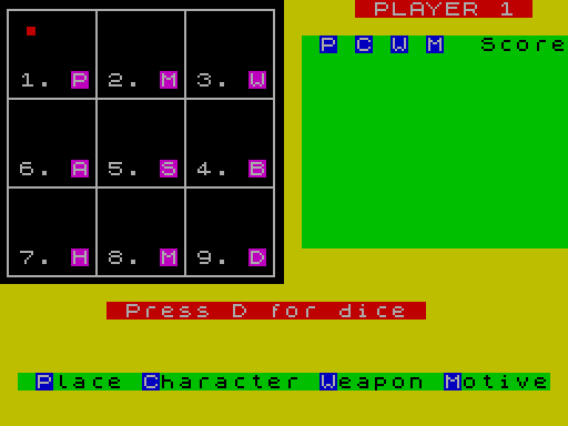 Запустите Detective и играйте. Это настольная игра, которую создал неизвестный автор, была опубликована творческой группой ASP Software Ltd в 1983 году в Великобритании.