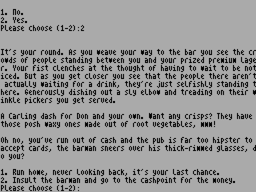 Можете начать играть в Dirty Bristow – The Game онлайн. Текстовая адвентюра, опубликованная в Великобритании в 2011 году командой Dirty Bristow, которую разработали Jon Bounds и Danny Smith.