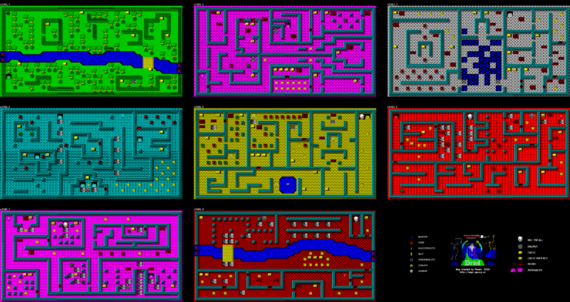 Игра Druid запускается прямо на сайте. Это приключенческая игра, которую создали Dene T. Carter и Andrew E. Bailey, была выпущена творческой группой Firebird Software Ltd в 1986 году в Великобритании.