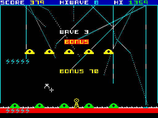 Проход НЛО по экрану каждые несколько минут и прямое попадание на это даст дополнительные очки.