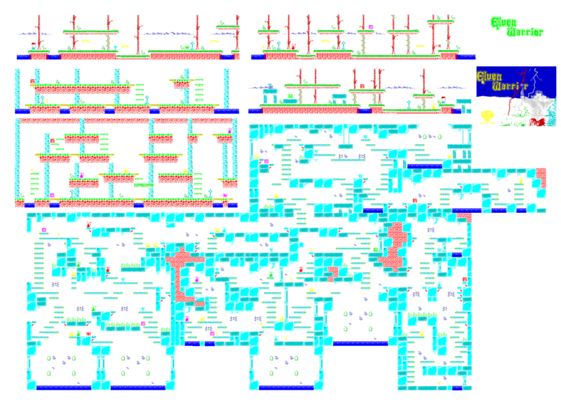 Falling into water or onto spikes will cause your premature death, as will coming into contact with the many different adversaries which roam the domain. Some enemy characters need weapons to destroy them, others are invincible. Elf starts his quest with only his trusty long bow and a quiver full of arrows.