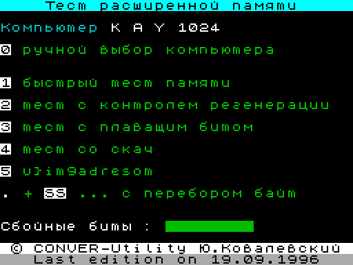 Играйте в Extended Memory Test без эмуляторов прямо на сайте. Эта программа для работы с вводом и выводом, опубликованная в России в 1996 году творческой группой Y. Kovalevsky, которую написал Y. Kovalevsky.
