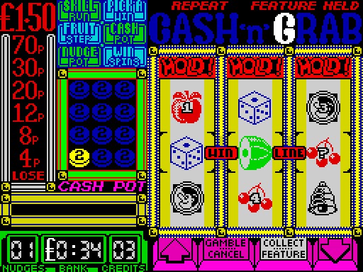 Классический симулятор игрового автомата для ZX Spectrum, разработанный британской студией Zeppelin Games Ltd. Игра точно воссоздаёт атмосферу настоящих «фруктовых» слотов из пабов и аркад 1980–90-х годов с вращающимися барабанами, яркими символами (фрукты, цифры, звёзды) и простыми, но азартными механиками.