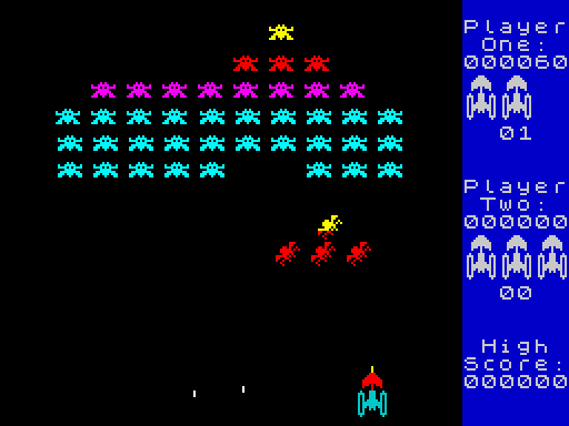Сыграйте в Galaxians прямо сейчас! Эта игра-стрелялка, опубликованная в Великобритании в 1982 году командой Artic Computing Ltd, которую написал William J. Wray.