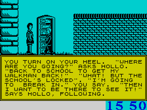 Grange Hill – компьютерная игра это приключенческая игра с разницей! Вместо ввода утомительную идти на север, идите на запад инструкции типа управлять Гончаров путем перемещения джойстика или нажатием клавиши движения. Это делает игру быстро и весело играть, но все еще дает вам головоломки и стратегии элементы, которые представить в самых хороших приключений.