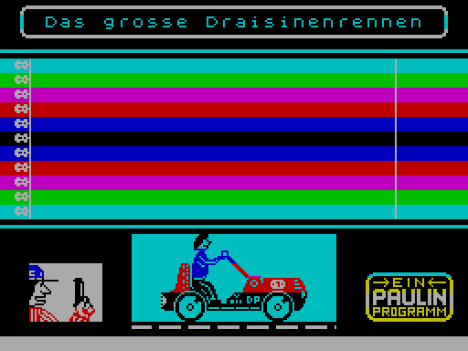 Можете начать играть в Grosse Draisinenrennen, Das онлайн. Это аркада, которую создал Paulin, была опубликована творческой группой Paulin в -1 году в Германии.