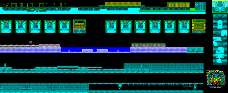 The Durrs from the Planet Suna have infiltrated Earth’s defensive forces, have set up a strong hold in an uncharted region of our planet and have assembled an atmosphere processing plant (APP) which gives them the facility to control the planet’s weather conditions. Their plan is to bring about another ice age and thereby take over Earth and all its resources. You are Lance Gryzor, a member of the federation for Earth’s defences (FED). Having discovered the evil intention of the Durrs, you must infiltrate the strong hold; make sure your way through the fortification, past the androids and into the heart of the complex to destroy the APP. You will encounter many dangers and numerous weapons systems together with deadly tunnels and awkward mazes. As you get to the heart of the complex, you will find that the APP has already started its dastardly work and if you manage to pass the ice region you will then encounter a labyrinth of pipes and ducts, only then you realise the danger has just begun. For the aliens incarnate will reveal themselves and you will be pitted against the most deadly foe ever known to man! There is only one man who could ever hope to accomplish this mission his name… Lance Gryzor!