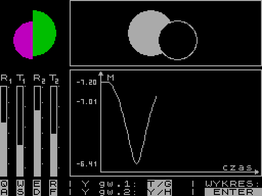 Можете начать играть в Gwiazdy Zmienne Zacmieniowe онлайн. Это программа для астрономических расчётов, которую создали Wojciech Sieron, Andrzej Strzeszewski, Miroslaw Furmanek и Adam Takiel, была выпущена творческой группой в 1987 году.