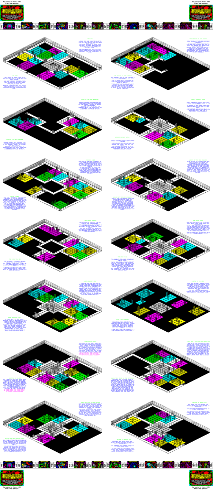 The game uses an isometric projection to display dungeons, a cutting-edge approach for the ZX Spectrum at the time. The graphics are detailed and strive to accurately convey the board game’s environments: walls, doors, furniture, traps, and monsters are easily recognizable. The soundtrack is limited by the Spectrum’s capabilities and consists of a thematic introductory melody and sound effects (impacts, footsteps, and monster roars).