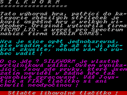 Запустите Informace pro Majitele ZX Spectrum и играйте. Это игра-симулятор, которую создал неизвестный автор, была издана компанией Luxus Software Ostrava в -1 году в Чехии.