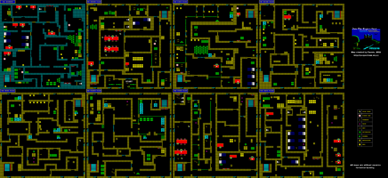 Infiltrate the fortress and rescue the three captives before they break under torture. It is your aim to cause maximum havoc and confusion before finding and detonating the hidden explosive on all eight floors. Whilst doing so it is in your interests to recover as many art treasures and jewels as possible from the commander’s private collection.