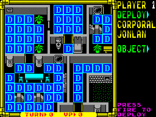 LASER SQUAD: Deploy: on red and yellow squares on top right and left of map