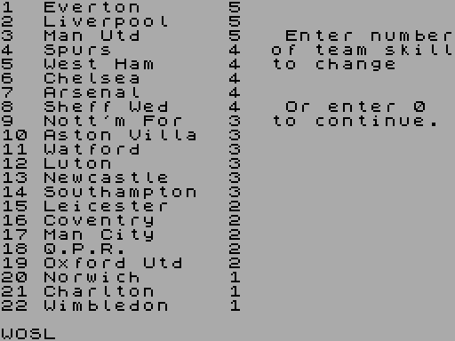 Запустите League Winners и играйте. Это спортивный симулятор, который создал неизвестный автор, был издан творческой группой Top Spec в 1986 году в Великобритании.