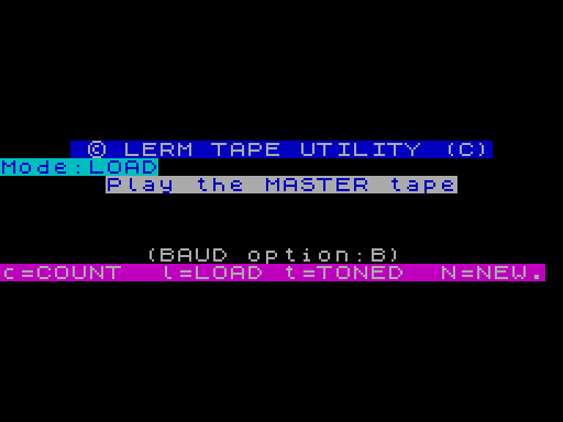 Перемотка свой LERM ленту в начале утилита преобразования – это вторая программа на ленте. 48К владельцы гарантировать, что вас есть пустой Spectrum и использовать НАГРУЗКИ “” (и ENTER), то играть на Ваш видеомагнитофон. Подождите, пока загрузка не будет завершена. 128K владельцы нажмите Кнопка сброса и использовать Tape Loader для 128k программ, но использовать 48k BASIC для 48K программ.