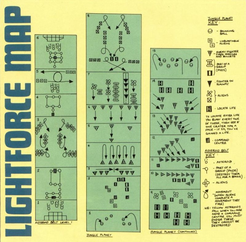 As you emerge from light-drive beyond the outer planet, you see several thousand battle-ready alien ships, hundreds of ground-based weapon installations and energy domes, and a host of special armaments pods circling each planet – all ranged against your single LIGHTFORCE fighter. As the odds are stacked heavily in your favour, you set about your task immediately – LIGHTFORCE is for REVENGE.