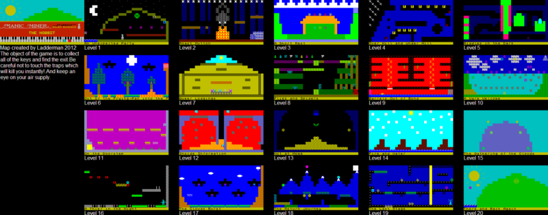Моя идея в том, что Хоббит бы карту весьма приятно для Manic Miner как первый имеет 19 глав и последний имеет 20 номеров, таким образом, есть номер для каждой главы в книге (в том же порядке), плюс бонус комнату, чтобы принести это до 20.