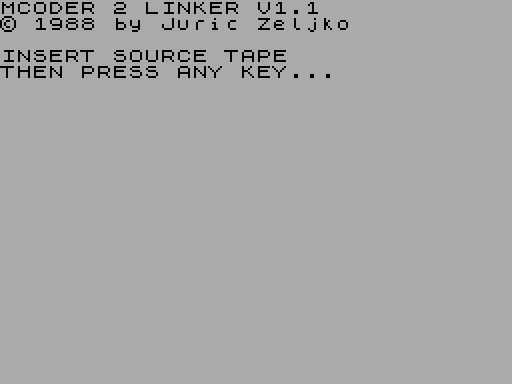 Запустите MCoder II Linker и играйте. Эта программа для разработки на BASIC, опубликованная в Боснии в 1988 году командой Zeljko Juric, которую написал Zeljko Juric.