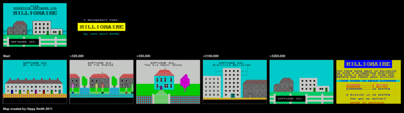 От маленького скромного дома до роскошного поместья? Примите один из маленьких вызовов жизни и станьте миллионером! Создайте компанию по производству программного обеспечения, покупайте, продавайте, рекламируйте, колеситесь и заключайте сделки с честным Гарри. Полноэкранное графическое представление вашего текущего места жительства, + множество других возможностей.