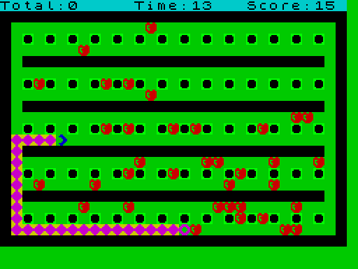 последующий кадр). Вы должны сделать это положительно, поедая яблоки до Времени иссякнут, чтобы перейти на следующий кадр. Любое положительное оценка будет добавлен в ИТОГО.