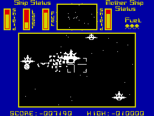 Диапазон радар, подъем и поворот инструменты, топливо, экраны и лазерные оружие, зал игры и наивысший балл сохранить подпрограмм / загрузки. Полные инструкции включены в игру.