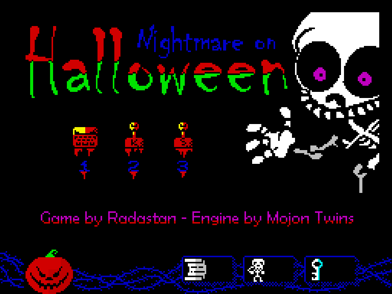 Запустите Nightmare on Halloween (Кошмар в Хэллоуин) и играйте. Помогите мистеру Бейтсу собрать 5 страниц священной книги, чтобы вернуть себе человеческий облик.Это аркада, которую создал Radastan, была опубликована командой Radastan в 2013 году в Испании.