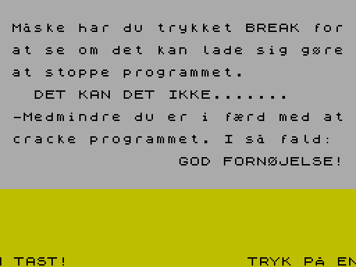 Сыграйте в No Break прямо сейчас! Это утилита для разработчиков на BASIC, которую создал Flemming R. Pedersen, была выпущена творческой группой Flemming R. Pedersen в 1986 году в Дании.