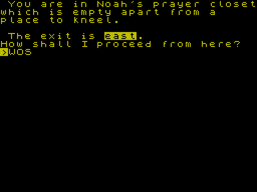 Игра Noah запускается прямо на сайте. Это текстовый квест, который создал Mike Young, был издан творческой группой Mike Young в 1984 году в Великобритании.